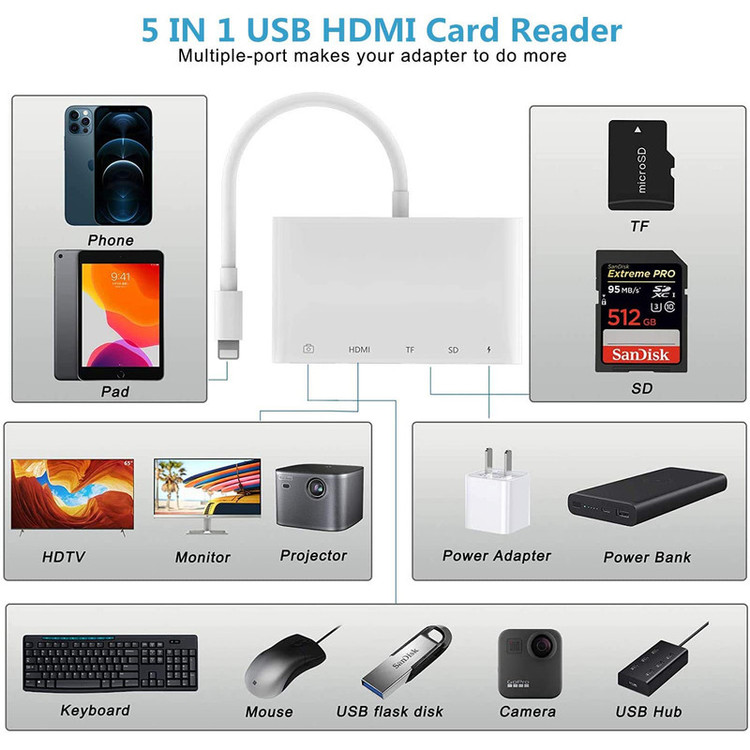 مبدل لایتنینگ به HDMI / OTG / USB.3 /MEMORY CARD میراسکرین مدل LC11