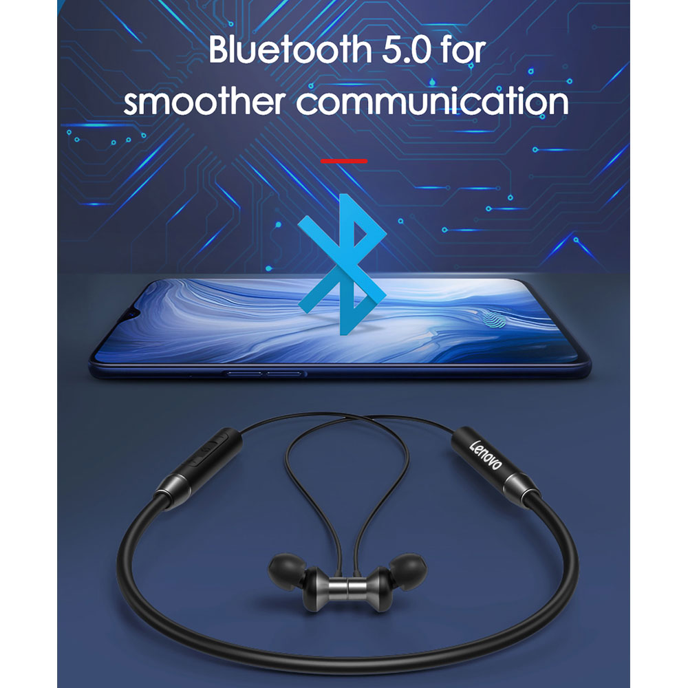 هندزفری بلوتوثی لنوو مدل HE05 TU-Bass یکی از هدفونهای بیسیم این کمپانی است که نسخه بروز شده و با کیفیت تر از سری بسیار محبوب HE05 میباشد .بخش گردنی این محصول با استفاده از پلاستیک مقاوم ABS ساخته شده است که بهکارگیری متریال پلاستیک علاوه بر مقاومت، وزن این هندزفری بیسیم را نیز تا حد زیادی کاهش داده است. مواد بکار برده شده در ساخت هندزفری لنوو HE05 TU-Bass به علت اینکه در تماس مستقیم با پوست هستند، ضد حساسیتاند و هیچ مشکلی را در استفاده طولانیمدت بروز نمیدهند .از ویژگیهای متمایز کننده این هندزفری نسبت به نسخه قدیمی HE05 میتوان به Bass عمیق، ارگونومی عالی، طول عمر باتری بالا، برقراری مکالمه HD و میکروفن مجهز به سیستم هوشمند حذف نویز اشاره کرد. دیافراگم کامپوزیت فیبرکربن + فن آوری صوتی بزرگ سیم پیچ متحرک تحت عمل مغناطیس و الکتریسیته، کیفیت صدای تکان دهنده موسیقی با فرکانس بالا ، متوسط و پایین را با قابلیت اطمینان بالا بازیابی میکند .کپسول این هندزفری از آلیاژ آلمونیوم ساخته شده و همین امر آن را در برابر ضربه و فشار مقاوم میسازد. دو سر هندزفری لنوو دارای آهنربا است که باعث می شود در صورت عدم استفاده و رها کردن هندزفری دور گردن این دوسر به هم متصل شده و مانند گردنبند کاملا با ثبات دور گردن شما قرار بگیرد. این هدست بلوتوث لنوو دارای تراشه بلوتوثی نسخه 5.0 است که از طریق آن به گوشی، تبلت و یا لپ تاپ متصل می شود. تراشه بلوتوثی 5.0، مصرف انرژی کمی دارد و بر بی سیم آن تا 10 متر می رسد. این چیپست بلوتوث، اتصالی پایدار و با ثبات و تماسی بدون اختلال را تضمین می کند.هدست بلوتوث لنوو HE05 TU-Bass دارای استاندارد محافظت IPX5 بوده و در برابر رطوبت و گرد و غبار از مقاومت بالایی برخوردار است.طراحی هندزفری بلوتوث دورگردنی لنوو بسیار ارگونومیک و مطابق طرح گوش بوده و به واسطه وزن کم ایربادز ها، در استفاده طولانی مدت کاربر را اذیت نخواهد کرد.کابل اتصال دو ایربادز به هم از جنس TPE بوده و بسیار انعطاف پذیر می باشد همچنین سری های ایربادز نیز از سیلیکا ژل و ضدحساسیت ساخته شده است. باتری 105 میلی آمپرساعت درون این هدست به کار رفته است که با یکبار شارژ کامل ، 8 ساعت پخش مداوم موسیقی را تضمین می کند. همچنین 120 ساعت در حالت آماده به کار خواهد بود.