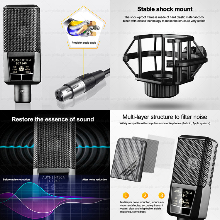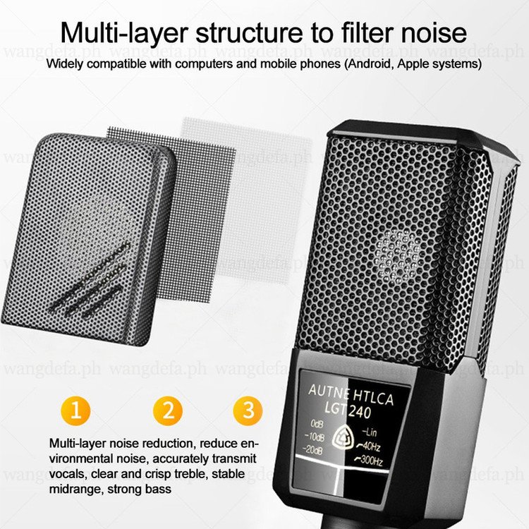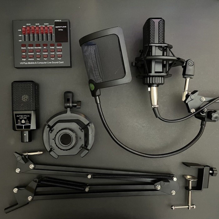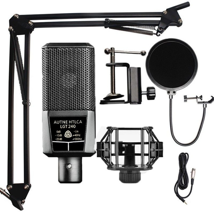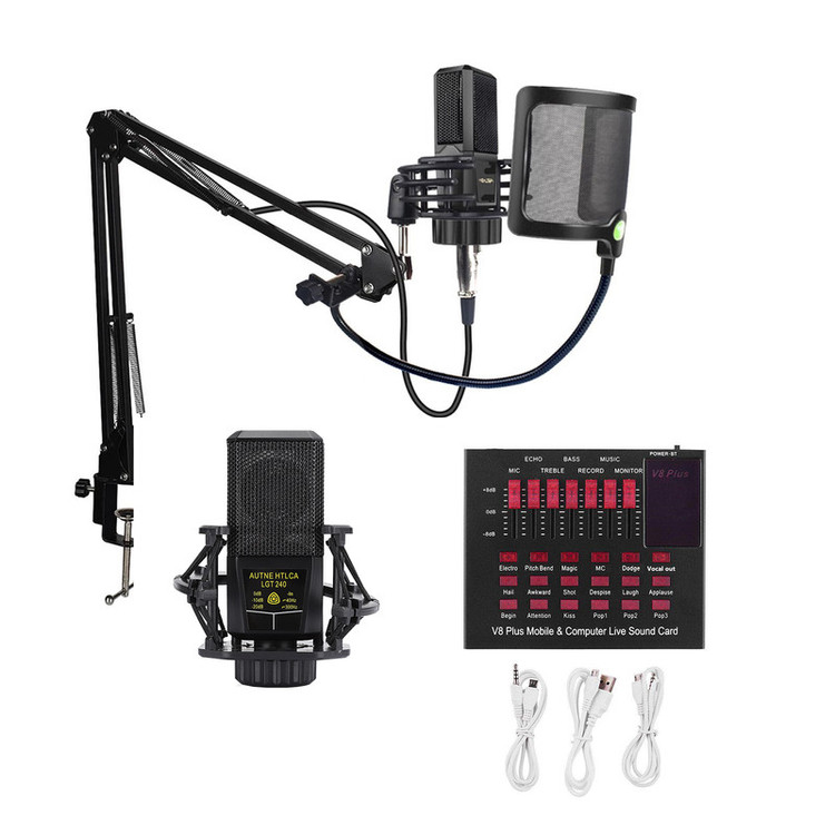 میکروفون استودیویی مدل Autne HTLCA LGT 240 به همراه کارت صدای V8 PLUS