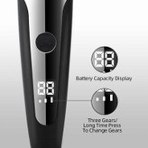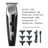 دستگاه وی جی ار مدل 059 مخصوص اصلاح مو صورت و بدن میباشد که دارای نمایشگر دیجیتال و سه سرعته میباشد . این دستگاه دارای 6 عدد شانه از سایز 1 تا 6 را دارا مباشد و با 3 ساعت شارژ این دستگاه 150 دقیقه قابل استفاده میباشد . دستگاه وی جی ار مدل 059 مخصوص اصلاح مو صورت و بدن میباشد که دارای نمایشگر دیجیتال و سه سرعته میباشد. ماشین اصلاح مدل V-059 دارای شش سری مختلف است و حتی برای کسانی که موهای صورت خود را با شمارهی صفر اصلاح میکنند مناسب خواهد بود. این محصول بدنهای با طراحی مطلوب دارد که دردستگرفتن و کار با آن را آسان کرده است. موتور این ماشین اصلاح هم کاملاً پرقدرت است. میتوانید با استفاده از 6 عدد شانهی موجود در بستهبندی این محصول، موهایی با طول 1،تا 6 میلیمتر داشته باشید. پس از پایان اصلاح میتوانید خردههای مو را از طریق برسی که داخل جعبه ارائه شده تمیز کنید. برای شارژ این ماشین 3 ساعت زمان لازم است که پس از آن قادر خواهید بود تا 150 دقیقه از این دستگاه استفاده کنید.این ماشین اصلاح توسط یک آداپتور 5 ولتی با شدت جریان 1 آمپر قابل شارژ است.