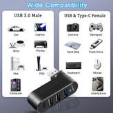 هاب چهار پورت RotoPro-U3 برند آی ریور دارای یک پورت USB3.0 واقعی 9 پین و دو پورت USB2.0 و یک پورت USB-C میباشد.این هاب این امکان را به شما می دهد که با کمترین فضا به تعداد USB های دستگاه اضافه کنید.سرعت انتقال دیتا در پورت USB3.0 در شرایط ایده آل تا 5 Gbps میباشد. جهت محافظت و بند جهت حمل آسان است.بدنه این هاب از پلاستیک pvc ساخته شده که بسیار سبک است و درگاههایی فلزی داراد. قسمت USB این هاب قابلیت چرخش 180 درجه را دارد و نقطه قوت این محصول میباشد که با تنظیم در زاویه دلخواه سایر پورت های لپ تاپ یا کامپیوتر کاربر را اشغال نمی نماید. درگاه یو اس بی تایپ سی USB-C این هاب به شما این امکان را میدهد تا با اتصال آدابتورهای USB با ولتاژ 5 ولت ، از افت ولتاژ جهت استفاده در دستگاههای مختلف پیشگیری کند . این هاب ابعاد جمع و جور و وزن کمی دارد .