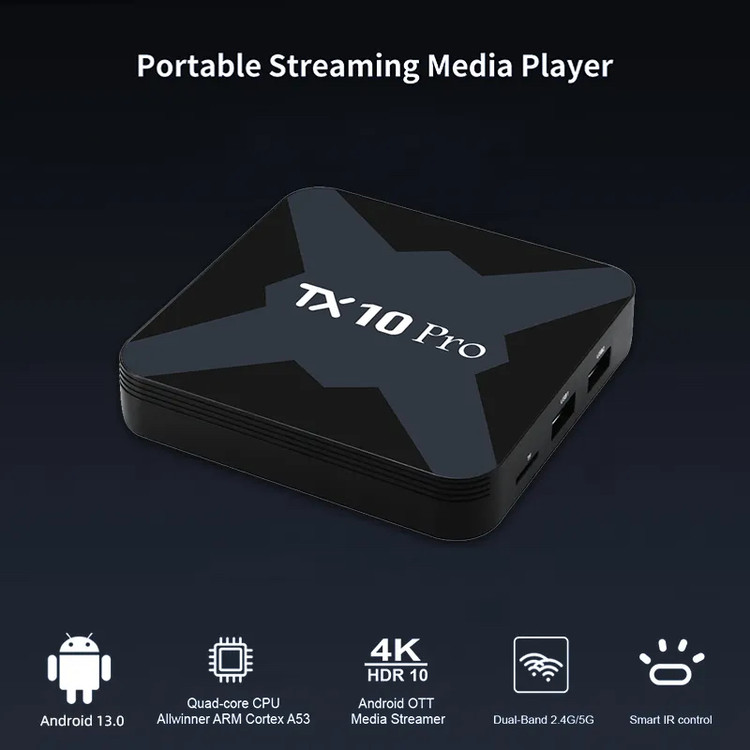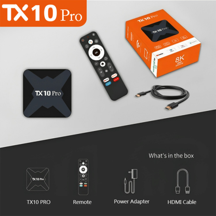 اندروید باکس TX10 PRO با طراحی زیبا و اندروید جدید ورژن 13 می باشد.اگر دنبال تبدیل تلویزیون خود به تلویزیون هوشمند هستید و میخواهید نرم افزار های پر طرفدار اندروید را روی تلویزیون خود داشته باشید، فیلم ببینید از پلتفرم های فیلیمو ، نماوا ، فیلم نت و..... وب گردی کنید، بازی های اندروید قابل استفاده در اندروید باکس را نصب کنید و ساعات مفرح برای خود و خانواده خود ایجاد کنید راه حل آن خرید اندروید باکس است.این اندروید باکس دارای پردازشگر پیشرفته Allwinner H616 ARM Cortex A53 64 Bit و گرافیک Mali 450 MP2 می باشد با حافظه داخلی 8 گیگ و رم 2 گیگ که دستگاهی باکیفیت و سرعت بالا را به ارمغان آورده است.این اندروید باکس دارای بلوتوث ورژن 5 است.درارای یک پورت ورودی USB3 و یک پورت ورودی USB2 همچنین دارای WiFi6 و کیفیت تصویر تا 8K می باشد.این دستگاه دارای ورودی کابل LAN و AV است و همچنین ورودی SD Card نیز می باشد و از طریق پورت HDMI و کابل HDMI تصویر را به تلویزیون شما انتقال می دهد. ویژگی منحصر به فرد این دستگاه ریموت کنترل بلوتوثی مجهز به دستیار صوتی هوشمند گوگل میباشد