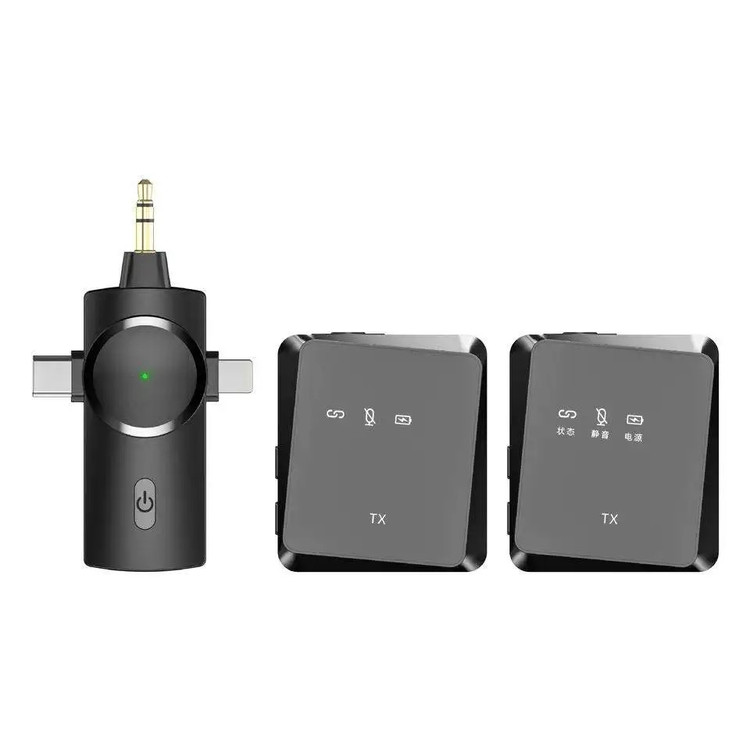 AirSky Dual TX یک ست میکروفن بی سیم یقه ای مناسب انواع کلیه گوشیهای موبایل ، دوربین های فیلم برداری ، تبلت ، لپ تاپ و میکسرهای صوتی میباشد .این ست میکروفن دارای دو فرستنده و یک گیرنده میباشد که دو قطعه فرستنده بطور همزمان به گیرنده متصل شده و صدا را با بهترین کیفیت انتقال میدهند. وجه تمایز این میکروفن با مدلهای مشابه دارا بودن هر سه کانکتور 3.5mm ، تایپ سی (Type-C) و لایتنینگ (Lightning ) میباشد که از تمامی گوشیهای موبایل ، تبلت ، لپ تاپ و میکسرهای صوتی پشتیبانی میکند . هچنین قطعه گیرنده این میکروفن دارای خروجی AUX میباشد که میتوان برای مانیتورینگ و کنترل کیفیت صدا همزمان یک هندز فری هم به ان متصل نمود ( هندزفری لوپ داخل بسته بندی دستگاه میباشد ) . نوع میکروفن لاوالیر lavalier کندانسر الکتریکی بوده که بصورت 360 درجه صدا را جذب میکند. این دستگاه بدون نیاز به هیچ گونه نرم افزار به گوشی شما متصل شده و صدا را با کیفیت بسیار عالی و شفاف به گوشی منتقل میکند . سیستم هوشمند حذف نویز این میکروفن بهترین کیفیت دریافت صدا در محیط های شلوغ و هنگام وزش باد در محیط باز را تضمین میکند . به لطف تکنولوژی 2.4GHZ انتقال صدا بدون هیچگونه تاخیری انجام میشود . شعاع عملکرد این میکرفن 100 متر و مدت زمان شارژ دهی آن تا 10 ساعت میباشد . به لطف استفاده از ماژول پیشرفته LAM در این میکروفن صدا با نهایت کیفیت و پایداری منتقل میگردد . همچنین این میکروفن قابلیت کارکردن هنگام شارژ را نیز دارا میباشد . فقط کافیست که قطعه گیرنده را به درگاه گوشی ، دوربین ، تبلت یا لپ تاپ متصل کرده و میکرفن را روشن کنید ، بصورت کاملا خودکار فرستنده و گیرنده به یکدیگر متصل شده و شروع به کار میکنند . این دستگاه مناسب برای لایو استریمینگ ، کلاسهای آنلاین آمورشی ، ساخت ویدیو های آموزشی و تبلیغاتی و در آخر ولاگینگ میباشد .
