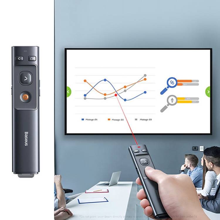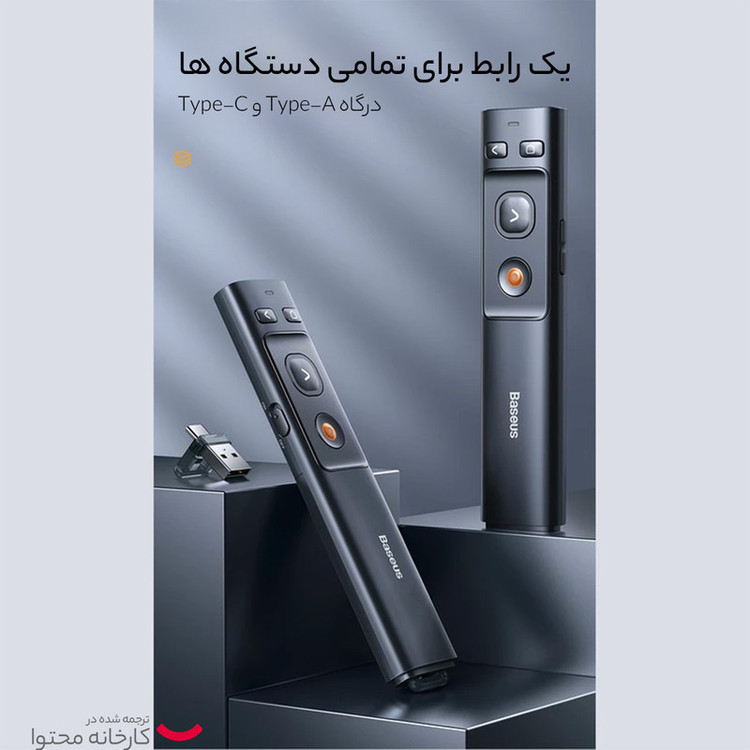 لیزر با برد 100 متر دارای دانگل با 2 نوع اتصال USB و Type C تکنولوژی لیزر RF 2.4GHz پشتیبانی از Windows / Mac OS رنگ لیزر قرمز