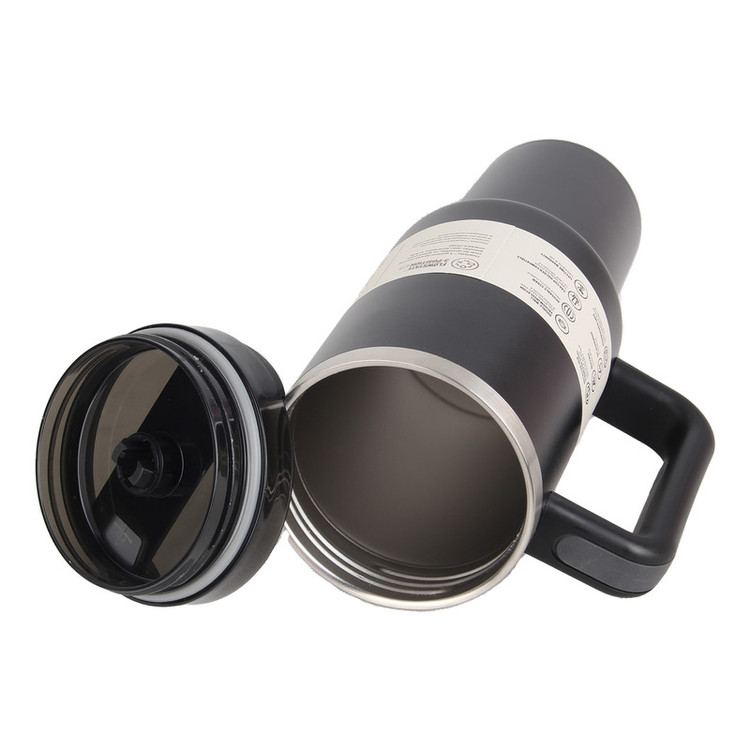 تراول ماگ مسافرتی جدید استنلی با حجم 40 OZ معادل 1.18 لیتر ، دارای عایق دبل وکیوم استیل 304 است ، دارای سری دو حالته قابل تغییر است که هم به صورت آسان نوش و هم قابل استفاده توسط نی است.این محصول BPA FREE است و قابل شست و شو در ماشین ظرفشویی است، دارای بدنه مقاوم به ضربه و ضد خش است.، طراحی آن به صورتی است که قابلیت استفاده در کنسول ماشین را دارد و همچنین دارای دسته برای حمل راحت تر است ، نی آن غیر قابل جویدن است. جنس بدنه آن از فولاد ضد زنگ است. قابل استفاده برای انواع نوشیدنی های سرد و گرم است.
