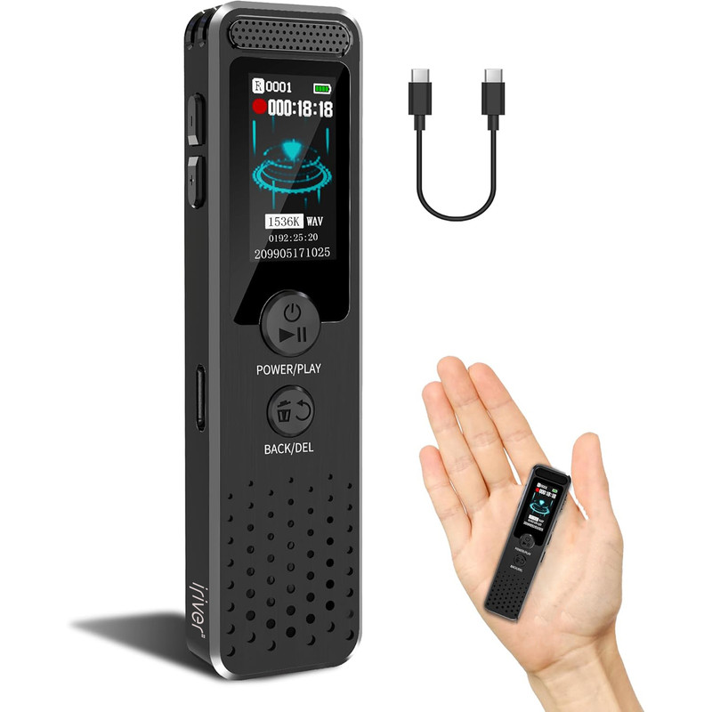 دستگاه ضبط کننده صدا آیریور مدل V69-64GB بهترین مدل ضبط کننده حرفه ای صدا با قیمت مناسب میباشد . ابعاد بسیار جمعوجور، وزن سبک تنها 50 گرم، حافظه داخلی با حجم 64 گیگابایت و ال سی دی رنگی، این دستگاه را از دیگر رقبا متمایز کرده است. چیپست بسیار کممصرف و همچنین باتری پر قدرت لیتیوم یونی نسل جدید ضبط صدا و پخش موسیقی (با هندز فری) تا 50 ساعت بهصورت مداوم میسر میسازد. دو عدد میکروفن استریو داخلی این دستگاه ضبط صدای استریو 360 درجهای با فرمت 1536KB/S WAV (باکیفیتترین حالت ضبط صدا حال حاضر) و فشرده MP3 باکیفیت بسیار عالی را فراهم میسازد. تکنولوژی هوشمند حذف نویز محیط (AGC) صدایی صاف، شفاف و بدون نویز حتی در محیطهای شلوغ را ممکن میکند. همچنین برای راحتی دسترسی و یافتن صداهای ضبط شده تمامی فایلها با برچسب تاریخ و ساعت ذخیره میشوند. کیفیت ضبط صدا در این مدل بنا به نیاز مصرف کننده دارای 7 حالت مختلف میباشد که در حالت WAV سمپل فرکانس ضبط صدا برابر با 1536 KB/S میباشد که در نوع خود بی نظیر است ، در صورت فعال سازی سیستم هوشمند سنسور حساس به صدا (AVR ) دستگاه فقط در زمان بودن صدا ، صدا را ضبط میکند که حساسیت این سنسور در منو قابل تنظیم میباشد. رکورد زمانبندی شده (TIME RECORDING)قابلیت شروع به ضبط صدا و خاتمه در تاریخ و ساعت معین را فراهم میسازد.اسپیکر داخلی ، تنظیم پسورد ( قفل کردن دستگاه با رمز ) از دیگر امکانات این رکوردر میباشد.در حالت پخش نیز این دستگاه دارای امکاناتی از قبیل اکولایزرهای مختلف ، حالتهای متنوع تکرار ، تکرار پاراگراف (A-B REPEAT ) و تنظیم سرعت پخش میباشد ، بوسیله در گاه یو اس بی تایپ سی USB TYPE-C به راحتی به کامپیوتر و گوشیهای موبایل با پشتیبانی OTG متصل شده و انتقال فایلهای ذخیره شده و یا موسیقی به حافظه داخلی را میسر میسازد همچنین میتوان این دستگاه را از طریق کلیه شارژرهای موبایل و درگاههای USB این دستگاه را شارژ نمود .بدنه این رکوردر فلزی و از آلیاژ آلمونیوم میباشد که سختی و دوام دستگاه را دوچندان میکند .در کل این دستگاه یک وسیله عالی کمک اموزشی با امکاناتی کامل و کیفیتی اصیل میباشد.