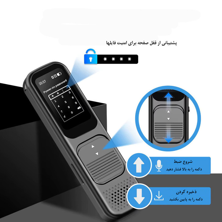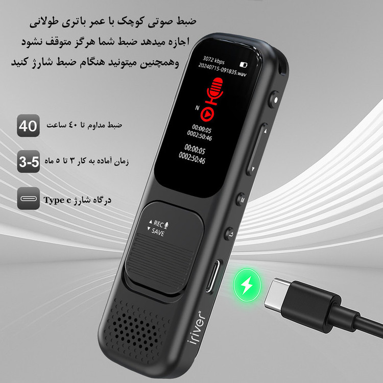 دستگاه ضبط کننده صدا آیریور مدل VR-10 64GB جدیدترین رکوردر این برند میباشد که تلفیقی از یک ضبط کننده صدای دیجیتالی حرفهای و یک پخشکننده موسیقی دیجیتال MP3 PLAYER است. این دستگاه ضبط حرفه ای صدا مجهز به بلوتوث نسخه 5.1 میباشد . VR-10 64GB قادر است با اتصال به گوشی تلفن همراه شما از طریق بلوتوث ، بصورت خودکار به محظ برقراری تماس شروع به ضبط تماس دو طرفه کند و همچنین بلوتوث این دستگاه قابلیت اتصال به انواع هدست ، هندزفری و اسپیکر بلوتوث را نیز دارد .ابعاد بسیار جمعوجور ( 95X27X10 میلی متر ) ، وزن سبک تنها 50 گرم، بلوتوث نسخه 5.1 ، پشتیبانی از کارت حافظه تا 256 گیگابایت و ال سی دی رنگی 1.33 اینچی با قابلیت نمایش دادن فولدرها و فایلها ، این دستگاه را از دیگر رقبا متمایز کرده است. باتری پر قدرت لیتیوم یونی نسل جدید ضبط صدا و پخش موسیقی (با هندز فری) تا 40 ساعت بهصورت مداوم میسر میسازد ( در حالت پخش از اسپیکر تا 5 ساعت ). دو عدد میکروفن استریو داخلی این دستگاه ضبط صدای استریو 360 درجهای با فرمت WAV را فراهم میسازد. این رکوردر قادر به ضبط صدا با کیفیت باورنکردنی 3072KB/S میباشد. تکنولوژی هوشمند حذف نویز محیط (AGC) صدایی صاف، شفاف و بدون نویز حتی در محیطهای شلوغ را ممکن میکند. تعداد 5 حالت پیش فرض ظبط صدا در منوی این دستگاه قابل انتخاب میباشد ( مصاحبه، جلسه ، محیط خیلی شلوغ ، تدریس ، استودیو ) که کاربر بنا به نیاز خود در منو انتخاب میکند. در صورت فعالسازی سیستم هوشمند سنسور حساس به صدا (VAS) دستگاه فقط در زمان بودن صدا، صدا را ضبط میکند . پشتیبانی از اکثر فرمتهای صوتی حرفه ای از قبیل FLAC,OGG,MP3,WMA.WAV ، قابلیت کنترل سرعت پخش ، تکرار پاراگراف از یک فایل ، ساخت پلی لیست ، تنظیمات اکولایزر این دستگاه را به یک ابزار حزفه ای کمک آموزشی تبدیل کرده است . این دستگاه به پورت USB تایپ سی هست که میتوان از طریق کلیه شارژرهای موبایل و درگاههای USB این دستگاه را شارژ نمود .این دستگاه برای راحتی انتقال اطلاعات بدون حافظه داخلی میباشد و یک کارت حافظه 64 گیگابایتی به همراه دستگاه ارایه میشود . از دیگر نقات قوت این دستگاه میتوان به داشتن مگنت در پشت آن برای اتصال به سطوح فلزی اشاره نمود .در کل محصولات آی ریور یک وسیله عالی کمک اموزشی با امکاناتی کامل و کیفیتی اصیل میباشند.