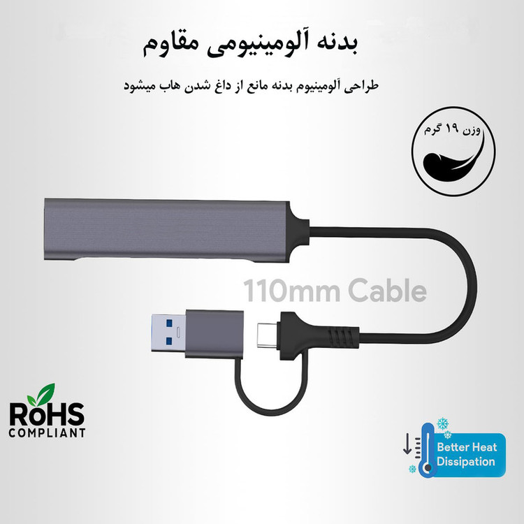 هاب USB و Type-c چهار پورت برند آی ریور، به عنوان یک راهکار کامل برای اتصال و مدیریت دستگاههای مختلف به کامپیوتر شما عمل میکند. با داشتن یک پورت یو اس بی 3.0 و سه پورت یو اس بی 2.0، این هاب امکان انتقال دادهها با سرعت بالا و پایدار را برای شما فراهم میکند. از پورت یو اس بی 3.0 میتوانید برای اتصال دستگاههای نسل جدید مانند فلش مموری، هارد دیسک خارجی، تلفن همراه و سایر دستگاهها استفاده کنید و با سرعت تا 5 گیگابایت در ثانیه، دادههای خود را منتقل کنید. همچنین، پورتهای یو اس بی 2.0 امکان اتصال دستگاههای قدیمیتر مانند موس، کیبورد، پرینتر، اسکنر و سایر دستگاهها را با سرعت تا 480 مگابایت در ثانیه به شما میدهند. علاوه بر این، هاب USB و Type-c برند MAKAR قابلیت شارژ دستگاههای قابل شارژ را نیز دارد. از طریق پورت یو اس بی 3.0، میتوانید تلفن همراه، تبلت، پاوربانک و سایر دستگاهها را به صورت همزمان و با سرعت مناسب شارژ کنید. البته برای شارژ سریعتر، توصیه میشود از آداپتور مناسب و قدرتمند استفاده کنید. این هاب همچنین دارای سیستم حفاظت چندگانه است که دستگاههای شما را در برابر اضافه جریان، اضافه ولتاژ، اتصال کوتاه و گرمای بالا محافظت میکند. با استفاده از این هاب، شما میتوانید به طور مطمئن و بدون نگرانی از حوادث غیرمطلوب از دستگاههای خود استفاده کنید. هاب USB و Type-c برند MAKAR با سیستم عاملهای ویندوز، مک و لینوکس سازگار است و نصب آسان و خودکار آن باعث میشود که شما به راحتی بتوانید آن را به کامپیوتر خود وصل کنید. همچنین، این هاب با دستگاههای OTG نیز سازگار است و شما میتوانید آن را به تلفن همراه یا تبلت خود متصل کرده و از دستگاههای یو اس بی مختلف مانند فلش مموری، موس و کیبورد استفاده کنید. طراحی باریک و زیبای هاب USB و Type-c برند آی ریور با جنس آلومینیوم، به کامپیوتر شما زیبایی خاصی میبخشد. رنگ نقرهای جذاب و ابعاد کوچک و سبک آن، امکان حمل آسان و جابجایی را به شما میدهد. در نتیجه، هاب USB و Type-c چهار پورت برند آی ریور یک راهکار کامل برای اتصال و مدیریت دستگاههای مختلف به کامپیوتر است. با سرعت و پایداری بالا، قابلیت شارژ دستگاهها، سیستم حفاظت چندگانه و سازگاری با سیستم عاملهای مختلف، این هاب انتخابی مناسب برای شما خواهد بود.