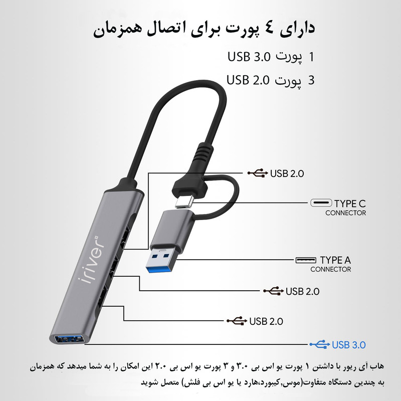 هاب 4 پورت USB-C آی ریور مدل HU-1