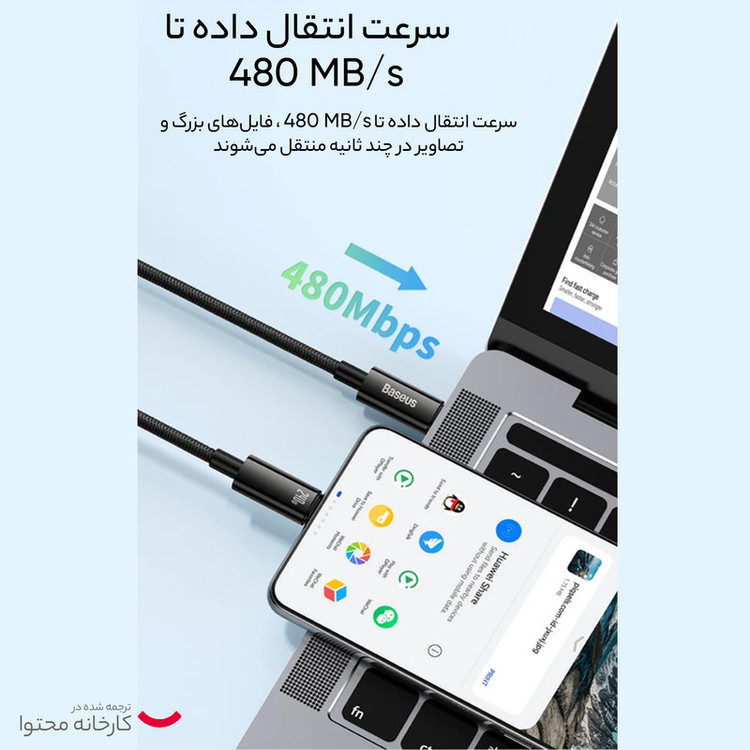 کابل تبدیل USB-C باسئوس مدل (TUNGSTEN GOLD (240W طول 2 متر