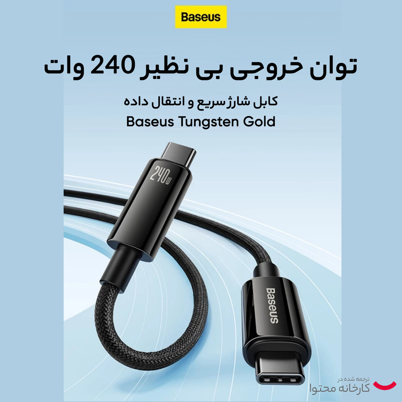 کابل تبدیل USB-C باسئوس مدل (TUNGSTEN GOLD (240W طول 2 متر