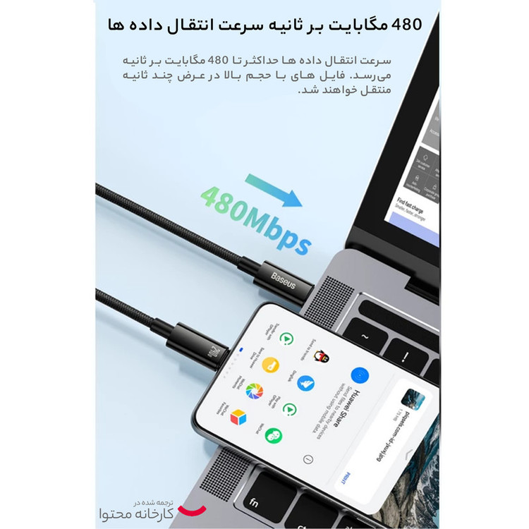 کابل تبدیل USB-C باسئوس مدل (TUNGSTEN  (240W طول 1 متر