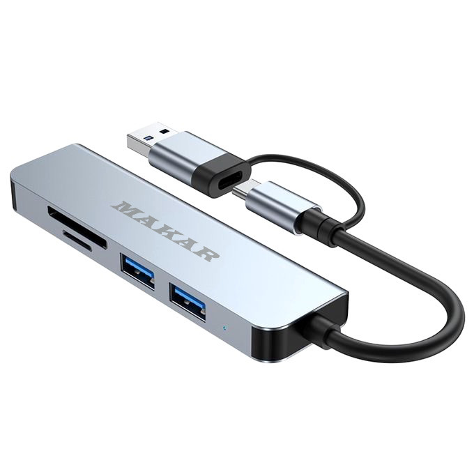 هاب و کارت خوان 5 پورت USB 3.0 ماکار مدل 5in1 MK-HU235 از برند MAKAR، یک هاب USB3.0 با طراحی دو سر (USB و Type-c) و پنج پورت است که گزینههای ارتباطی شما را در رایانه یا موبایل به صورت قابل توجهی افزایش میدهد. این هاب با استفاده از مواد با کیفیت بالا از جمله آلیاژ آلومینیوم و ABS ساخته شده است که تضمین میکند دوام و استحکام کافی را دارد. این هاب دارای یک پورت USB 3.0، دو پورت USB 2.0 و همچنین شکافهای کارت SD و TF میباشد که انتقال دادهها و دسترسی به چندین دستگاه را به طور همزمان امکانپذیر میکند. علاوه بر این، یکی از ویژگیهای برجسته این محصول امکان استفاده به عنوان ایستگاه شارژ میباشد. پورت USB 3.0 سرعت انتقال دادهها را تا 5 گیگابیت بر ثانیه ارائه میدهد که انتقال سریع اطلاعات را تضمین میکند. علاوه بر این، دو پورت USB 2.0 نیز از تجهیزات جانبی USB مختلفی مانند فلش دیسک، کیبورد و موس پشتیبانی میکنند. این هاب همچنین به عنوان یک رم ریدر (کارتخوان) عمل میکند که دسترسی سریع و آسان به فایلها و دادههای موجود در کارتهای حافظه را فراهم میسازد. آلیاژ آلومینیومی هاب 5in1 HUB&CardReader مقاوم در برابر حرارت و ضد اثر انگشت است و دارای قابلیتهای خنککنندگی مناسبی میباشد که طول عمر طولانی هاب را تضمین میکند. هاب MAKAR با استفاده از تراشه هوشمند داخلی خود، از کارکرد بدون تأخیر و تداخل پورتها پشتیبانی میکند و از بروز جریان بیش از حد، ولتاژ بیش از حد و دمای بالا جلوگیری میکند تا ایمنی دستگاهها تضمین شود. علاوه بر این، هاب ماکار دارای نشانگر LED می باشد که در هنگام آماده به کار روشن می شود. این هاب به صورت Plug and Play عمل میکند و نیاز به نصب درایور خاصی ندارد، که استفاده از آن را سریع و آسان میسازد. در مجموع، هاب 5in1 HUB&CardReader مدل MAKAR یک ابزار بسیار کارآمد و کاربردی است که با قابلیتهای متنوع و طراحی مقاوم خود، گزینهای عالی برای گسترش پورتهای دستگاههای الکترونیکی شما محسوب میشود. با این هاب میتوانید به راحتی و با سرعت بالا اطلاعات خود را منتقل کنید، چندین دستگاه را به طور همزمان به سیستم خود متصل کنید و از امکانات گستردهای که فراهم میکند بهرهمند شوید.