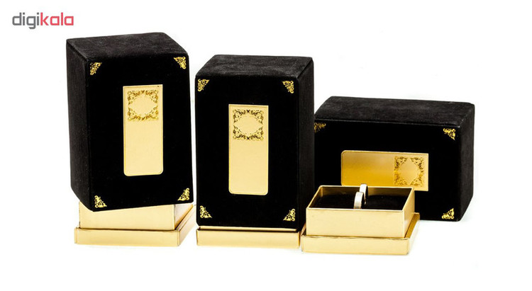 - جنس رویه پارچه مخمل مشکی همراه طلا کوب - جنس داخل پارچه مخمل مشکی - طراحی شده جهت حلقه های لاکچری - قابلیت ضرب لوگو و متن
