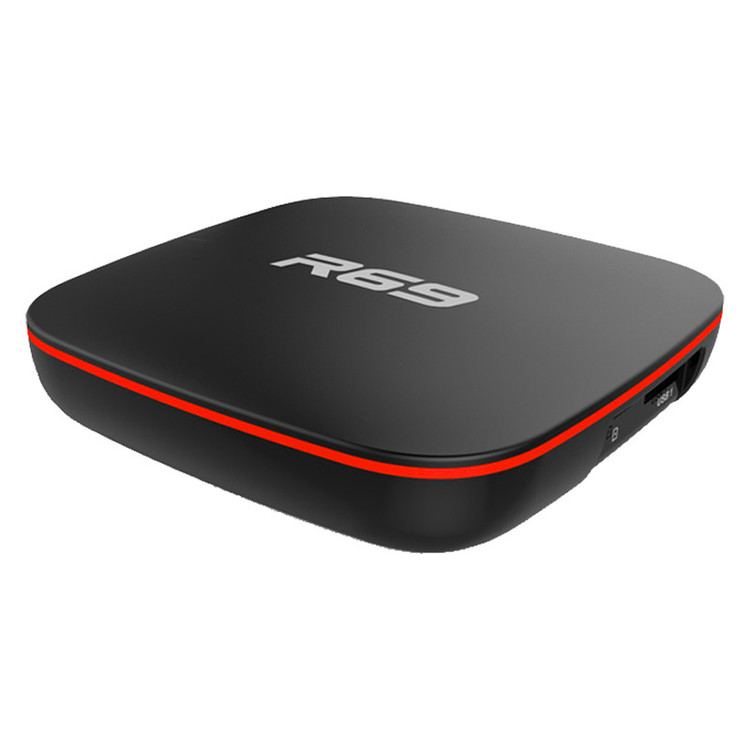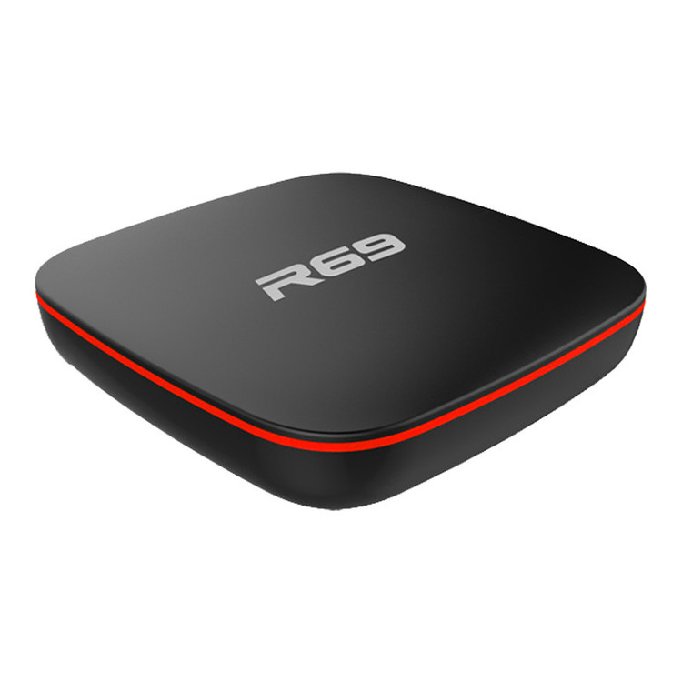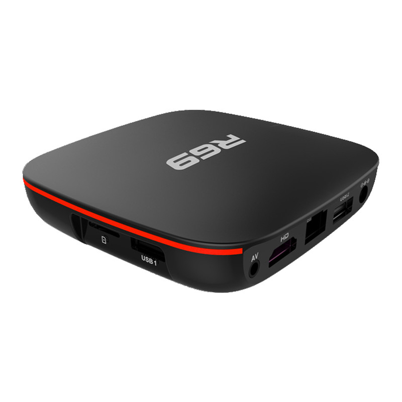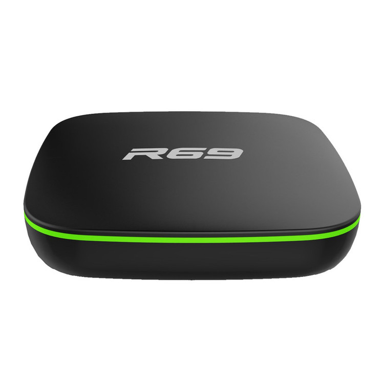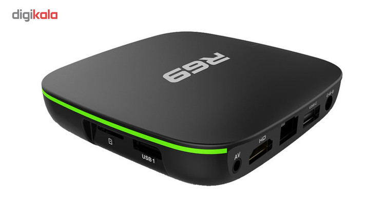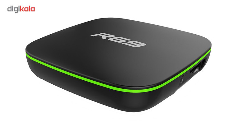 اندروید باکس Android box در واقع یک کامپیوتر کوچک قابل حمل است که روی آن سیستم عامل اندروید نصب شده است.اندروید باکسها به لحاظ امکانات همانند گوشیها یا تبلتهای اندرویدی عمل میکنند . اندروید باکس R69 از پورتهای HDMI ، USB، LAN, AV پشتیبانی میکند و همچنین قابلیت نصب کارت حافظه تا حجم 32 گیگا بایت را دارد. با این دستگاه تمام قابلیتهای یک کامپیوتر کوچک از قبیل انجام بازی ، وبگردی ، نمایش فیلم و عکس ، استفاده از همه نرم افزارهای شبکههای اجتماعی ، اتصال تلفنی از طریق Skype و … را خواهید داشت. این دستگاه دارای یک ریموت کنترل از راه دور است و اتصال آن به شبکه اینترنت هم از طریق پورت LAN و هم شبکه بی سیم انجام میشود. این محصول دارای پردازشگر چهار استه ای است و از سیستم عامل اندروید 7 پشتیبانی میکند. شما میتوانید با استفاده از این محصول از تماشای تصویری با کیفیت 1080و Full HD و 4K لذت ببرید. دستگاه R69 از 24 زبان زنده دنیا از جمله انگلیسی، فارسی، آلمانی، ژاپنی و ... پشتیبانی میکند. نرم افزار این دستگاه از فیلمهای3D نیز پشتیبانی میکند